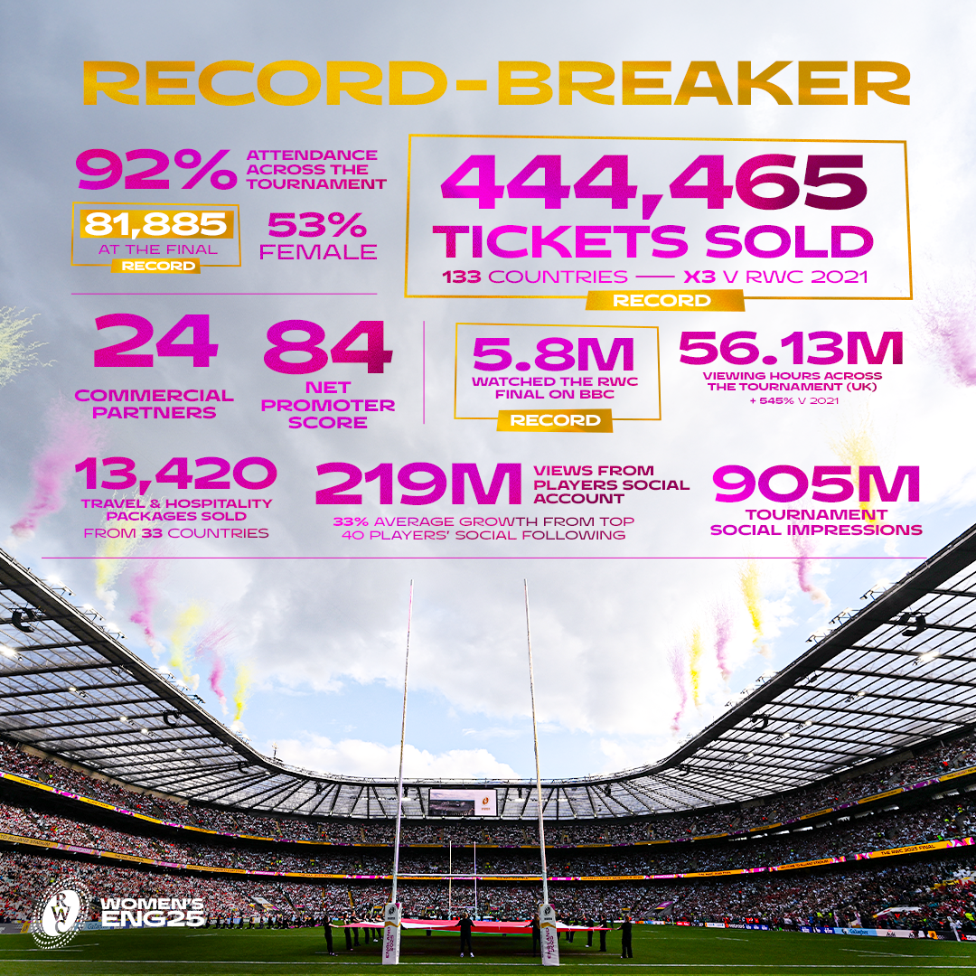 The ultimate winner of the six-week event was women's rugby, as records were shattered week-in-and-week-out, leading into the second-highest attended Rugby World Cup match for both the men's and women's competitions and the most watched rugby match of the year thus far at 5.8 million viewers for the Final. Word Rugby, Rugby Americas North, and Unions look forward to capitalizing on the energy generated from these milestone markers and leverage momentum to grow the game as a whole. Read more from World Rugby on what the tournament accomplished here.